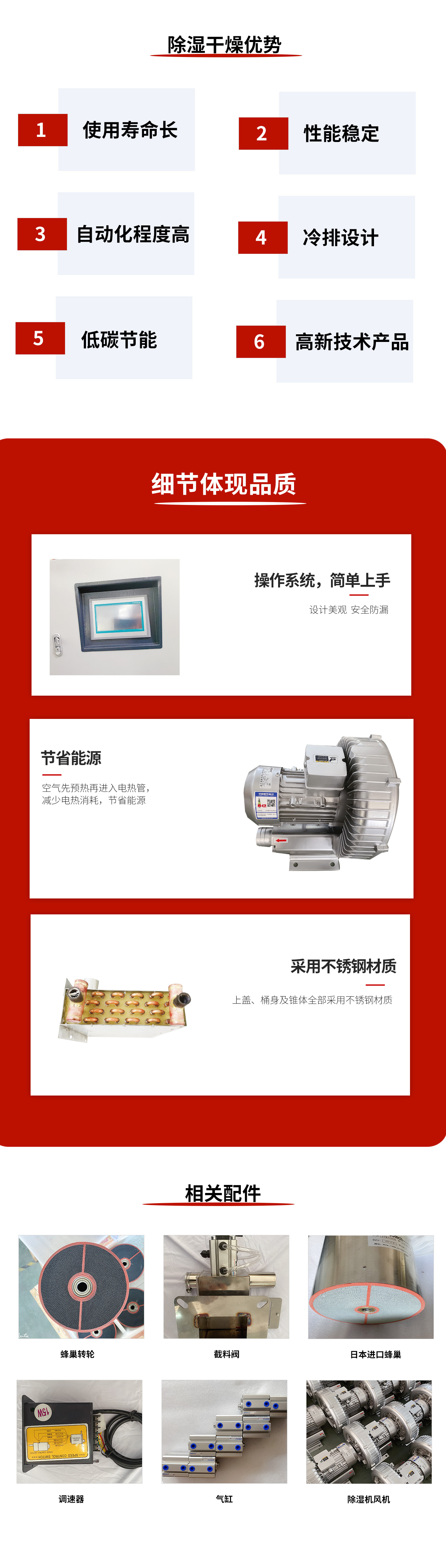 2、采用蜂巢式可清洗陶瓷转轮,长期运转仍然不会产生粉屑,可保持原料的洁净度,免除污染,确保产品品质。