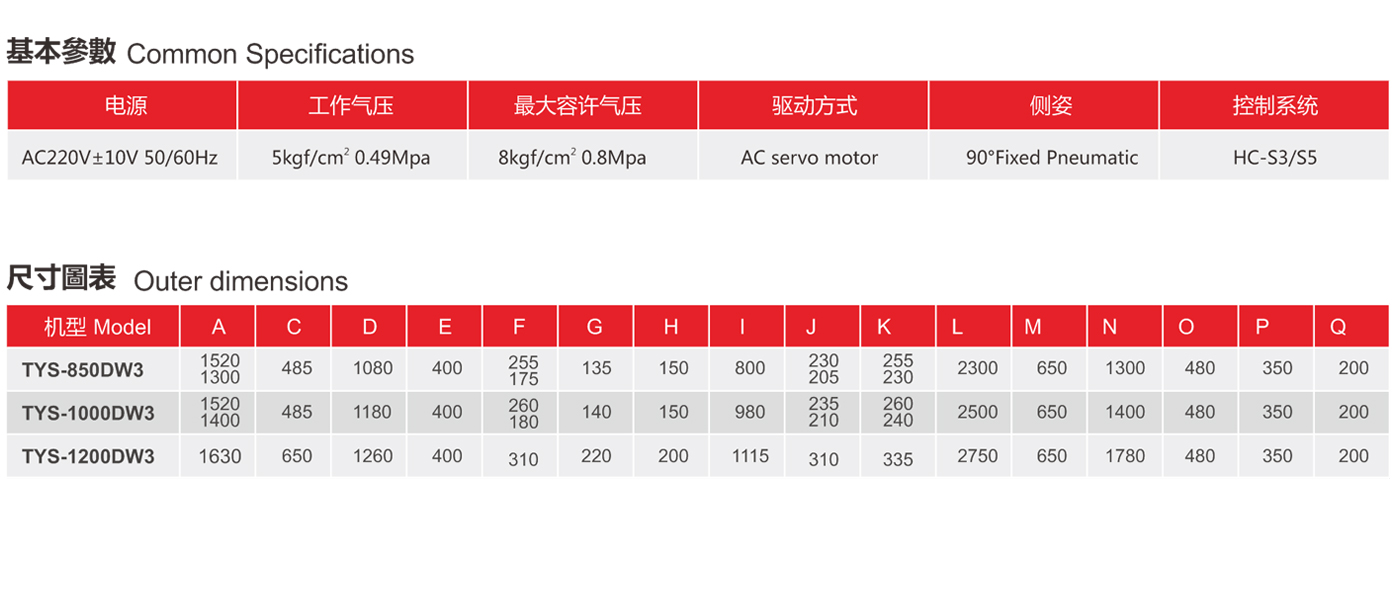 TYS系列標配為雙截單邊式
